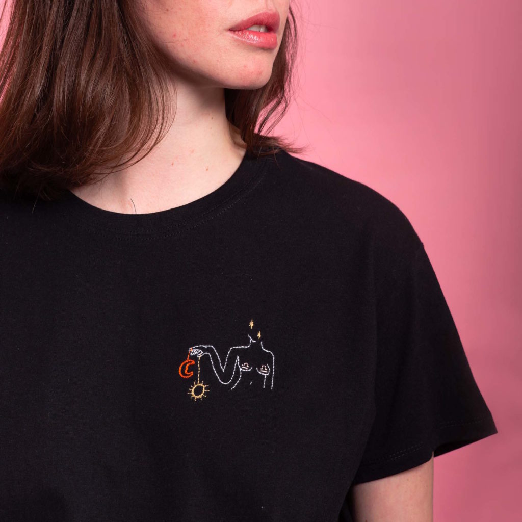 Découvre notre collection de t-shirts et sweats brodés Astro ! Chez Francosse, on est assez sensibles à l’astrologie, et en plus, cet univers mystique nous inspire beaucoup. On a donc créé 12 modèles unique pour chaque signe astrologique, mêlant le mystique et la beauté de la femme et de son corps. Toutes nos pièces sont brodées à la main et à la commande dans notre atelier parisien, avec amour et patience.
