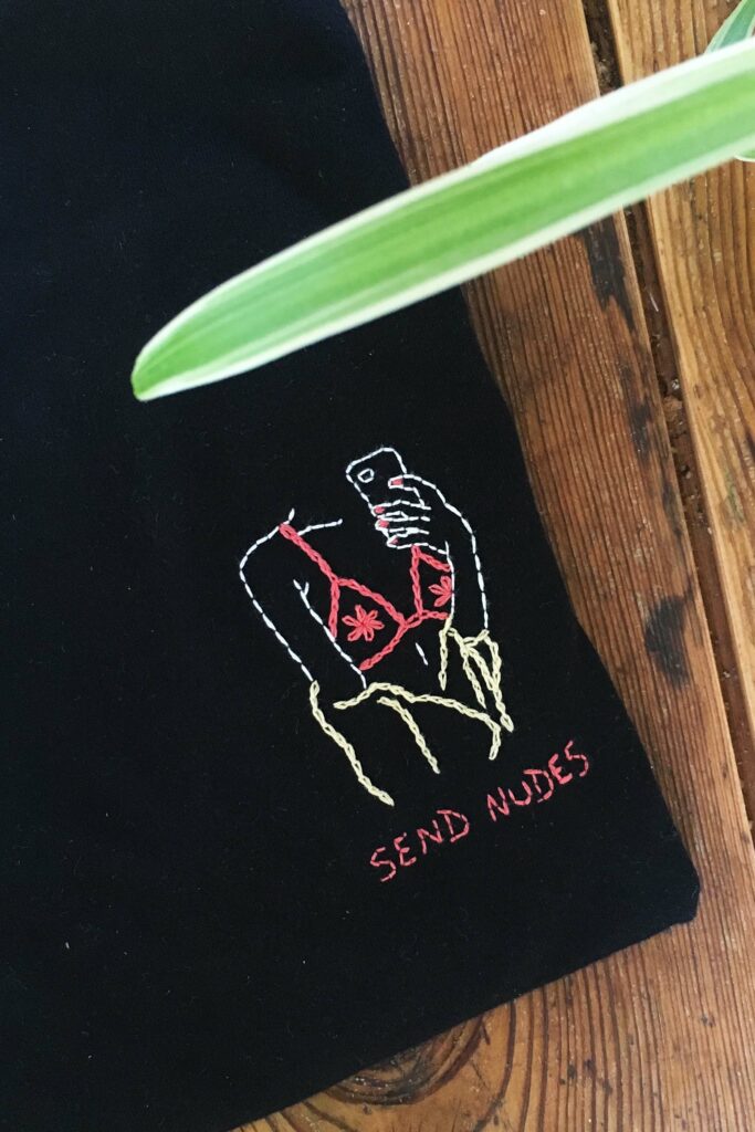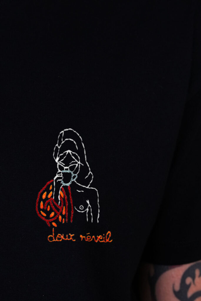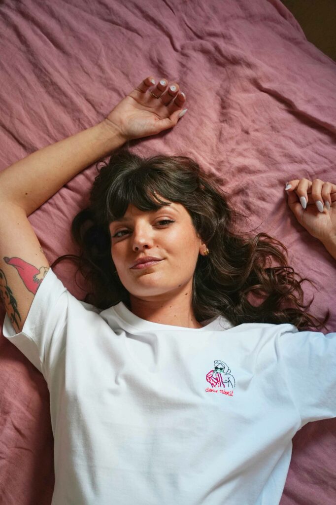 Découvre notre collection de t-shirts brodés hyper cocooning. Ici, Francosse célèbre l’hiver. La saison où on dit oui au thé chaud et au vin rouge, aux pulls tout doux et aux grosses chaussettes, aux matinées de la flemme et aux après midi du chill, où malgré le froid nous resterons libres de tous nos artifices : nues.
