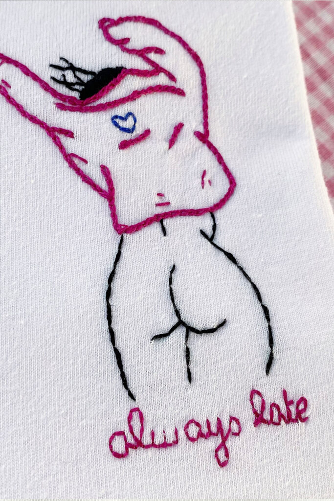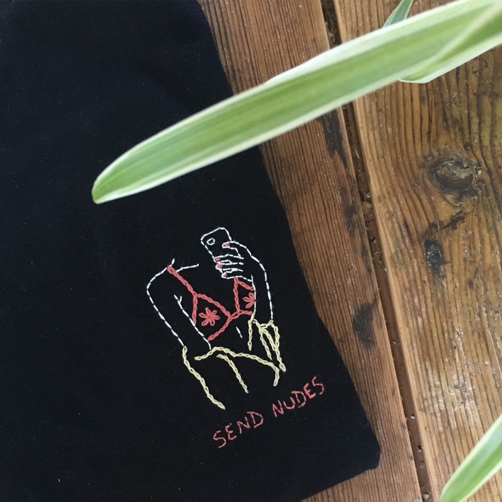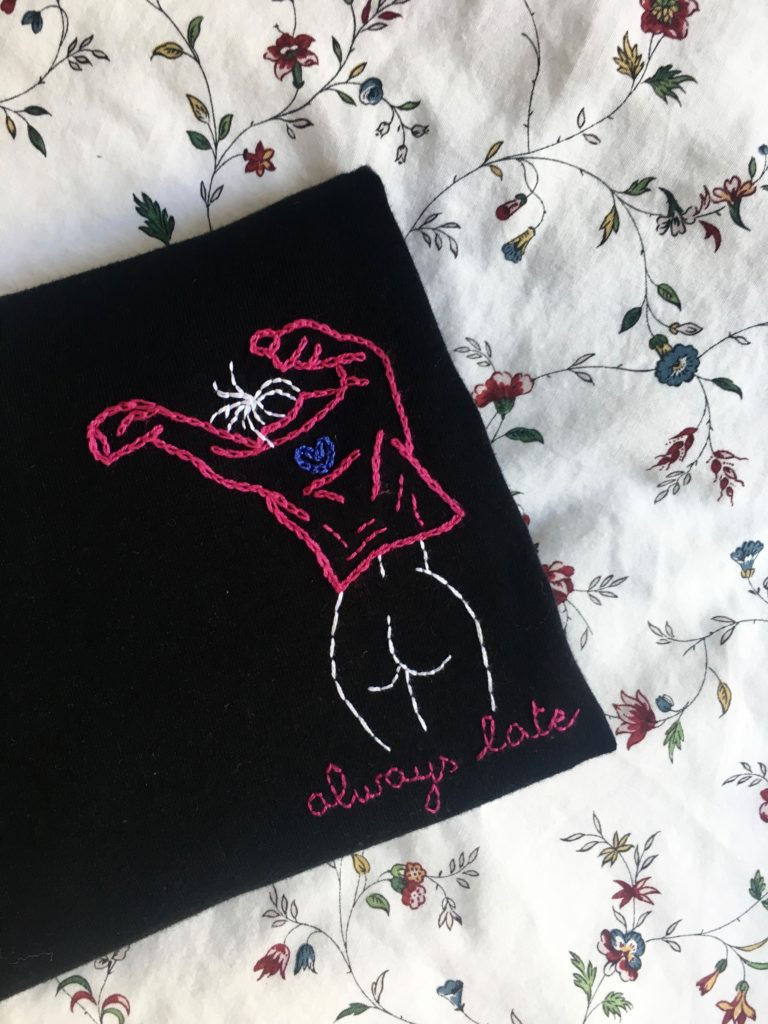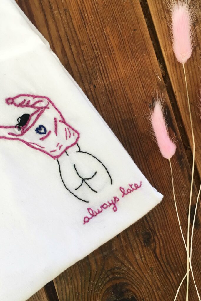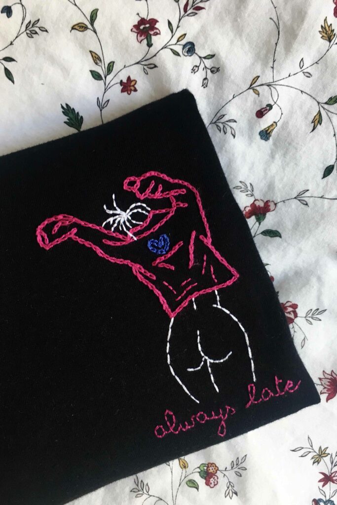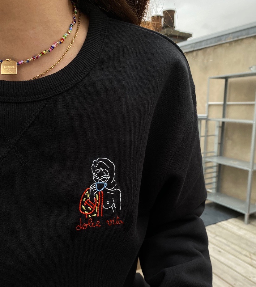 Toutes nos pièces sont brodées à la main dans notre atelier parisien, avec amour et patience. Chaque pièce est brodée à la commande pour éviter la surproduction !