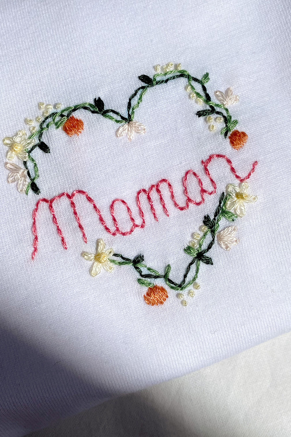 T-shirt unisexe 100% coton brodé à la main