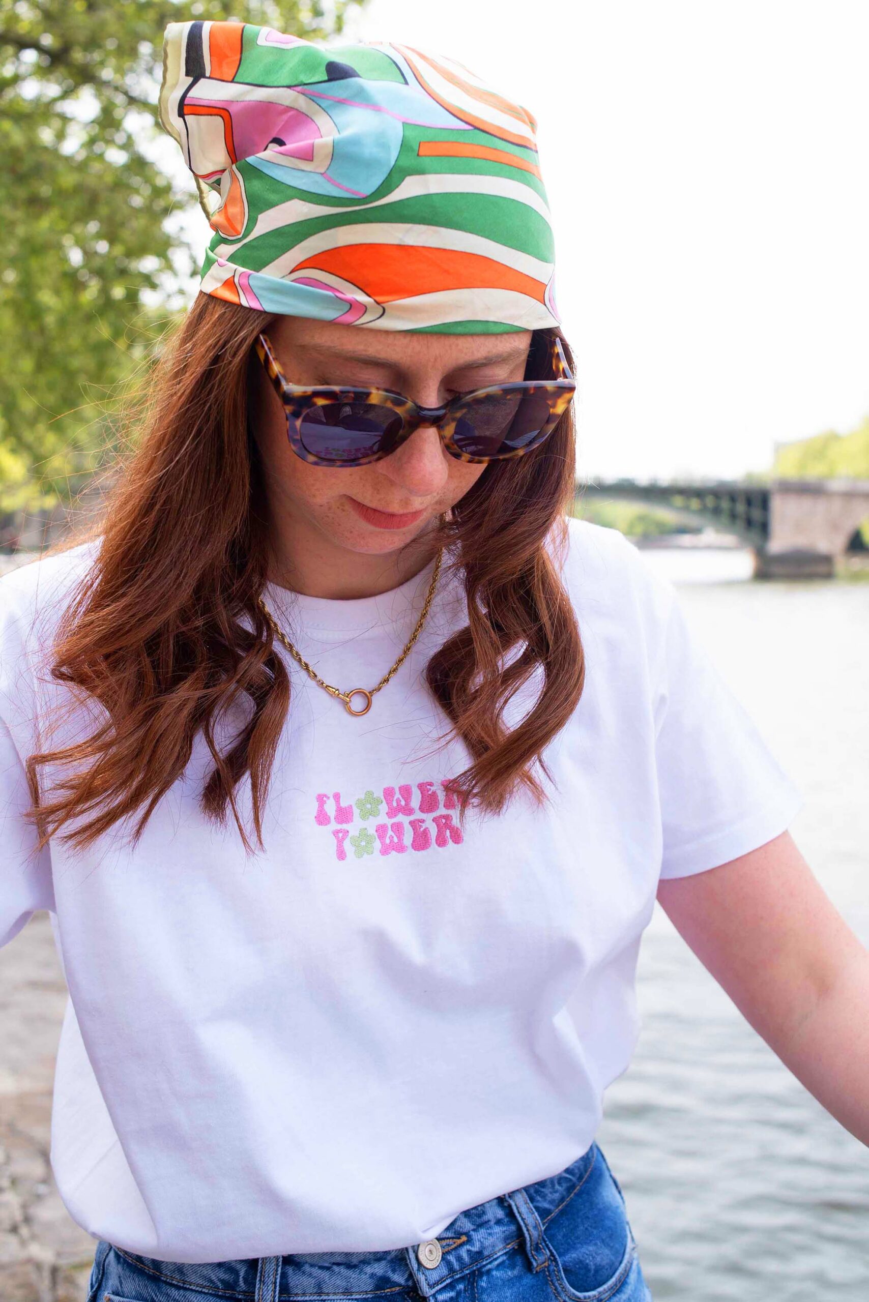 Embrassez l’esprit libre et coloré des années 60 avec notre T-shirt brodé « Flower Power », une pièce unique alliant parfaitement le confort du t-shirt avec le style original de la broderie. Sélectionné pour sa douceur et sa coupe unisexe parfaite, notre t-shirt 100% coton est brodé dans notre atelier parisien, avec amour et patience. Offrez-vous un vêtement unique et intemporel qui raconte une histoire.