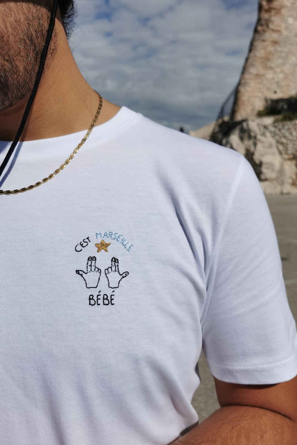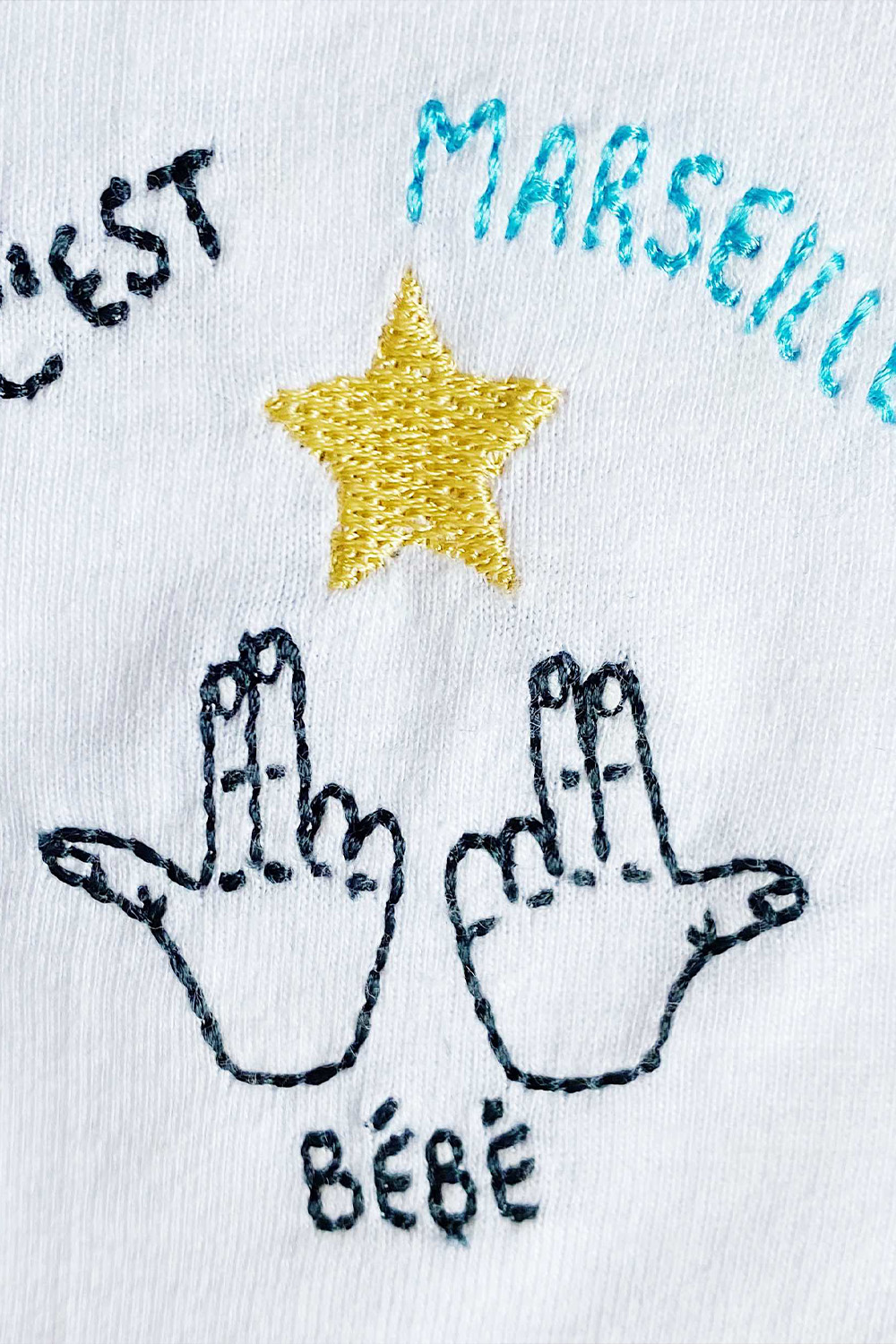 Toi aussi tu penses que le J c’est le S ? Chez Francosse, on a ce qu’il te faut, notre bestseller « Marseille bébé », une pièce unique confectionnée avec amour. Sélectionné pour sa douceur et sa coupe unisexe parfaite, notre t-shirt 100% coton est brodé à la main dans notre atelier parisien, avec patience et savoir-faire. Il allie parfaitement le confort du t-shirt avec le style original de la broderie !