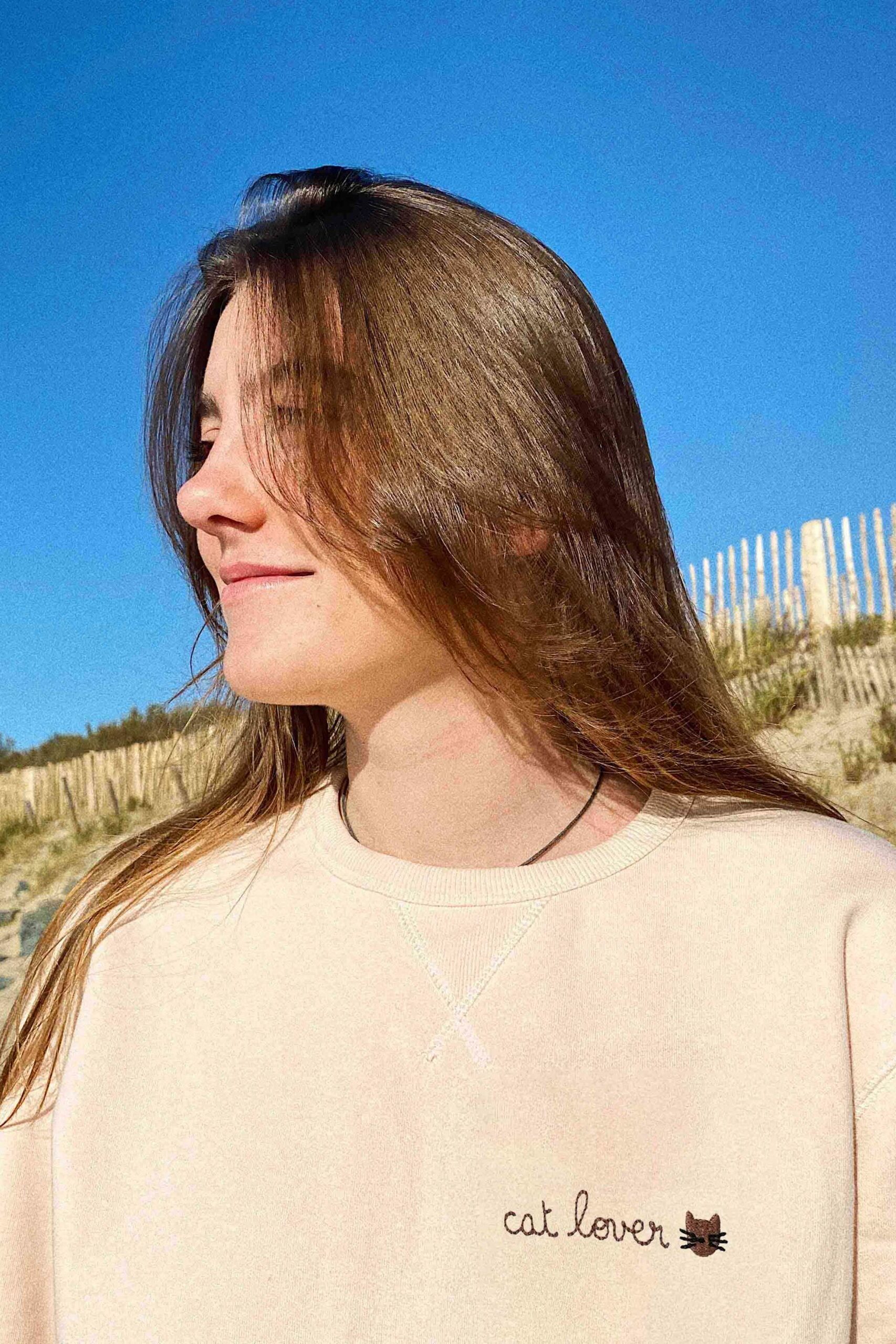 Exprimez votre amour pour les chats avec notre sweat brodé « Cat Lover ». Chaque pièce est confectionnée avec amour, incarnant la passion et l’affection que vous ressentez pour ces adorables compagnons à quatre pattes. Sélectionné pour sa matière ultra douce, chaude et molletonnée, et sa coupe unisexe parfaite, notre sweat 100% coton est brodé dans notre atelier parisien, avec amour et patience. Offrez-vous un vêtement unique et intemporel qui raconte une histoire.