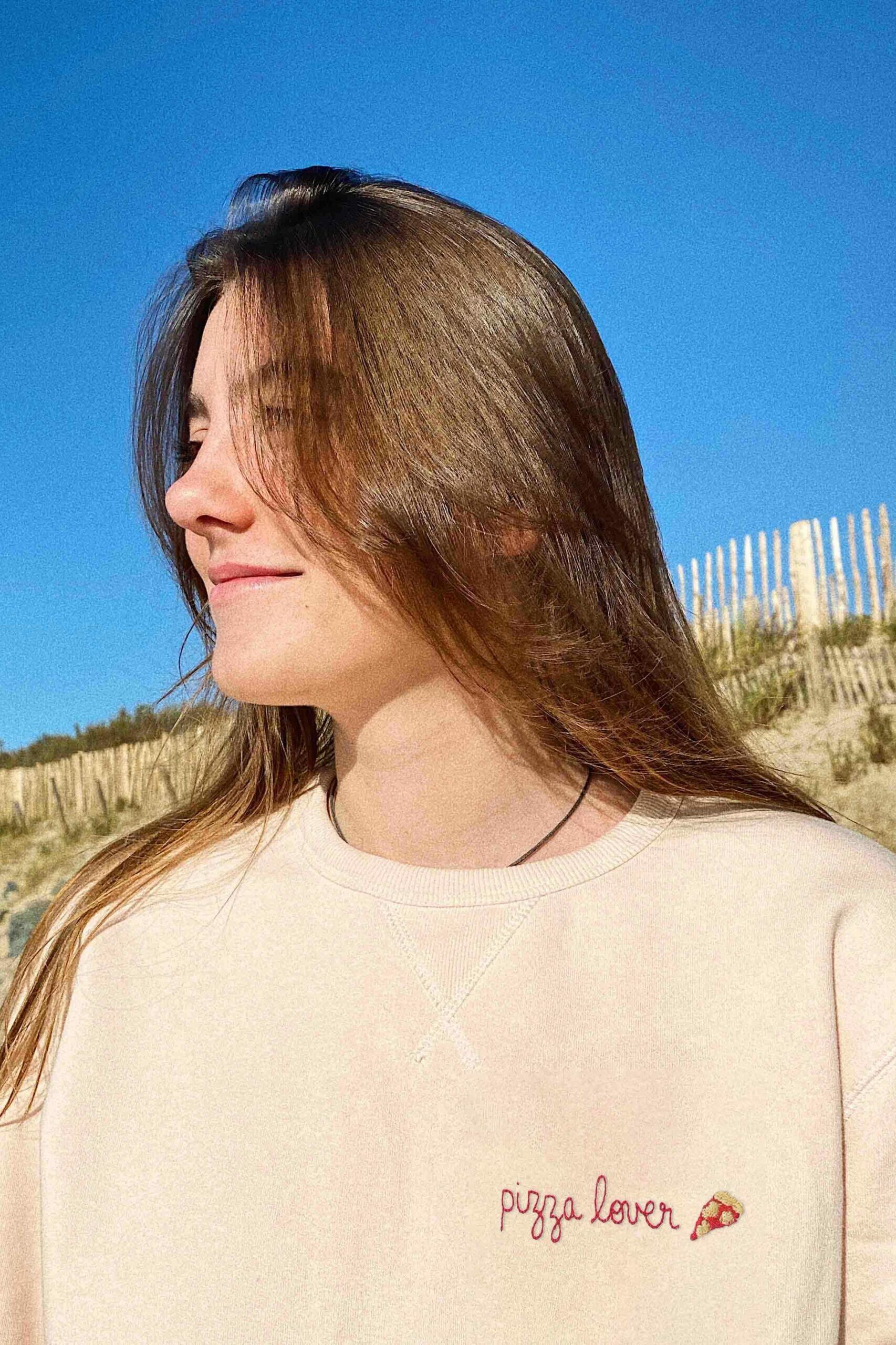 Célébrez votre passion pour la pizza avec notre sweat brodé « Pizza Lover », une pièce unique alliant parfaitement le confort du sweat avec le style original de la broderie. Sélectionné pour sa matière ultra douce, chaude et molletonnée, et sa coupe unisexe parfaite, notre sweat 100% coton est brodé dans notre atelier parisien, avec amour et patience. Offrez-vous un vêtement unique et intemporel qui raconte une histoire.