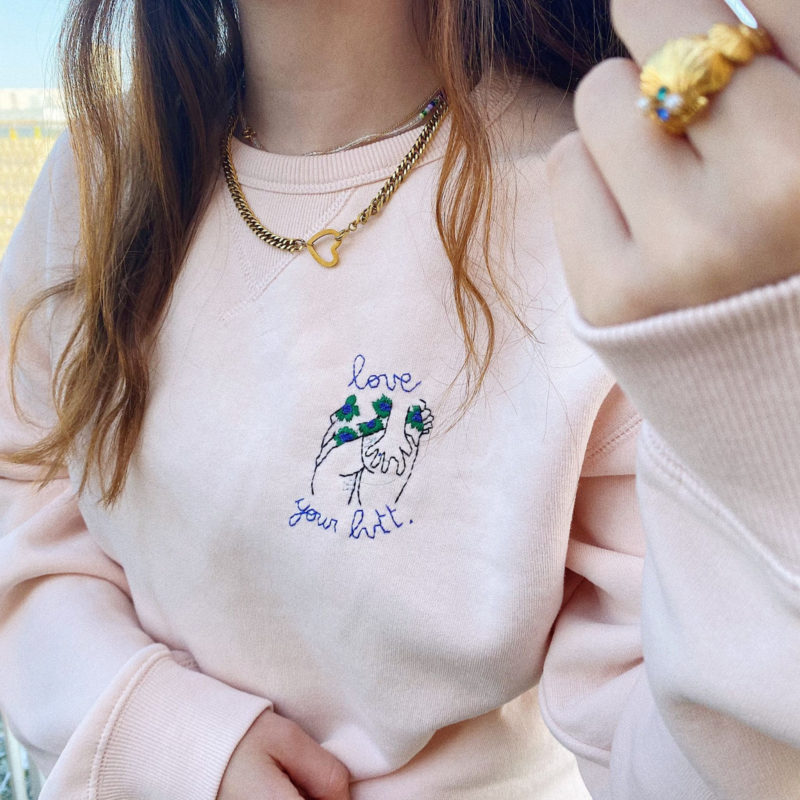 Célébrez la diversité et la beauté de tous les corps avec notre sweat brodé “Love Your Butt”, une pièce unique confectionnée avec amour. Sélectionné pour sa matière ultra douce, chaude et molletonnée, et sa coupe unisexe parfaite, notre sweat 100% coton est brodé à la main dans notre atelier parisien, avec patience et minutie. Il allie parfaitement le confort du sweat avec le style original de la broderie !