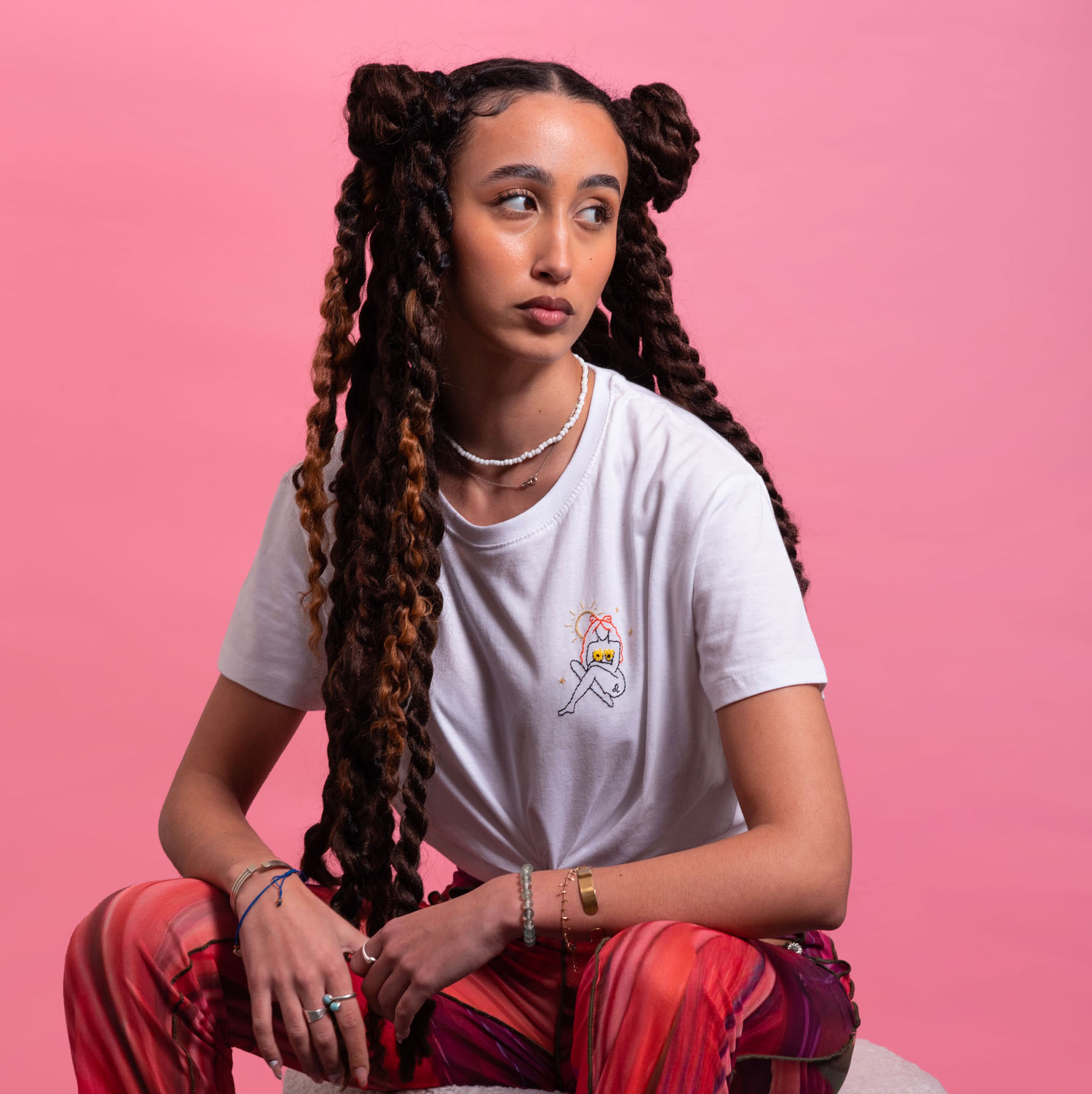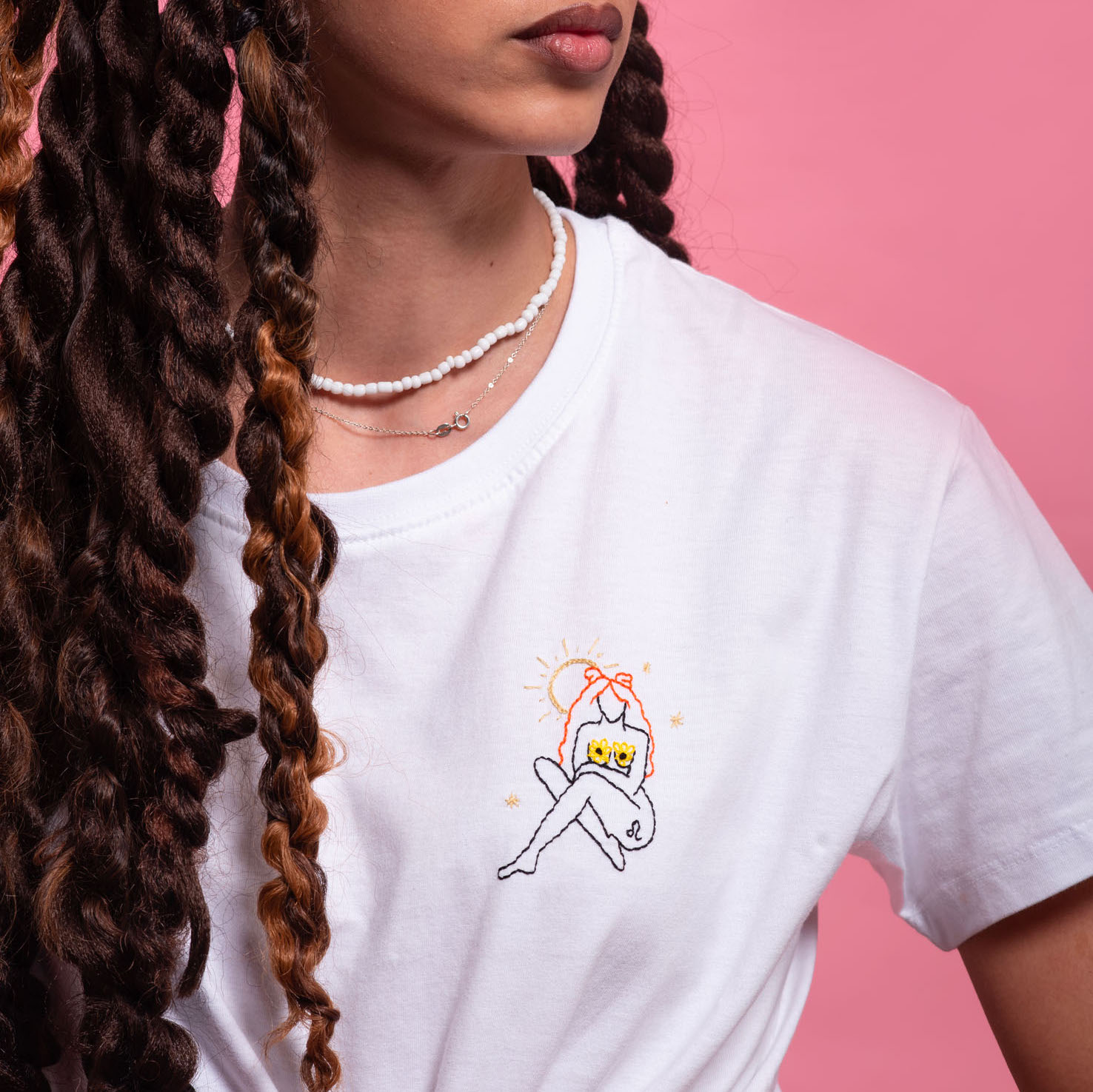 T-shirt unisexe 100% coton brodé à la main