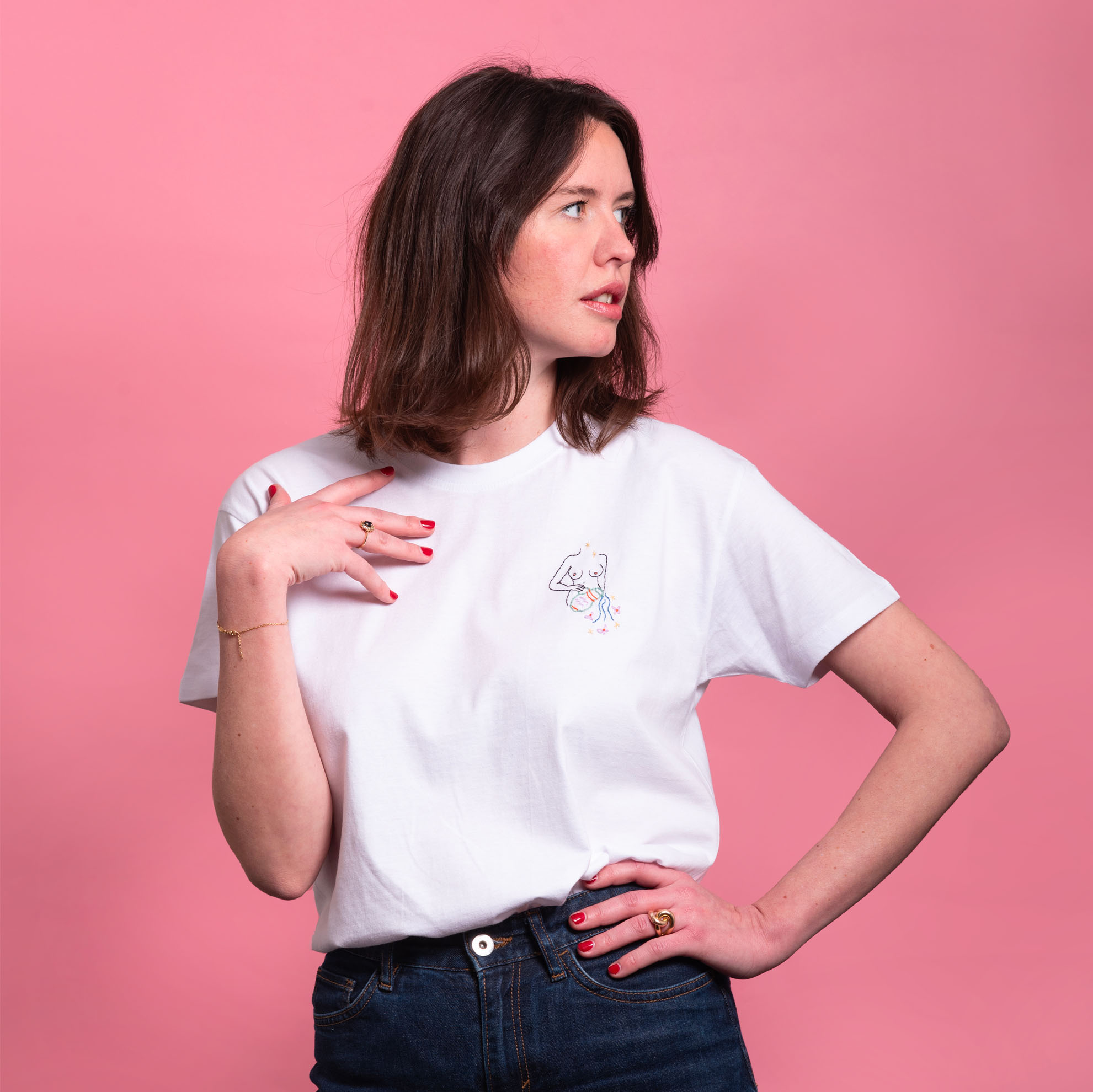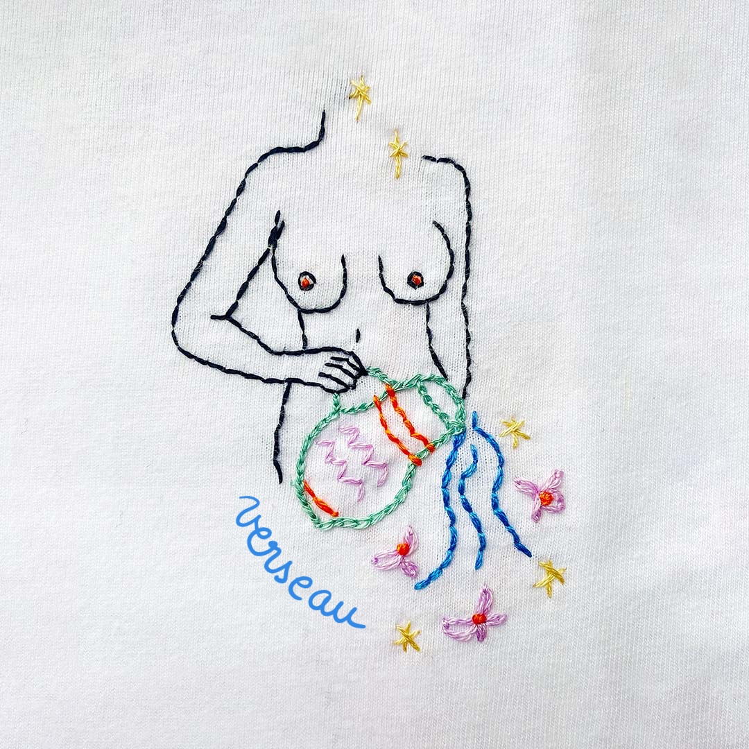 Découvrez notre t-shirt brodé à la main Astro « Verseau », une pièce unique confectionnée avec amour. Sélectionné pour sa douceur et sa coupe unisexe parfaite, notre t-shirt 100% coton est brodé à la main dans notre atelier parisien, avec patience et savoir-faire. Il allie parfaitement le confort du t-shirt avec le style original de la broderie !