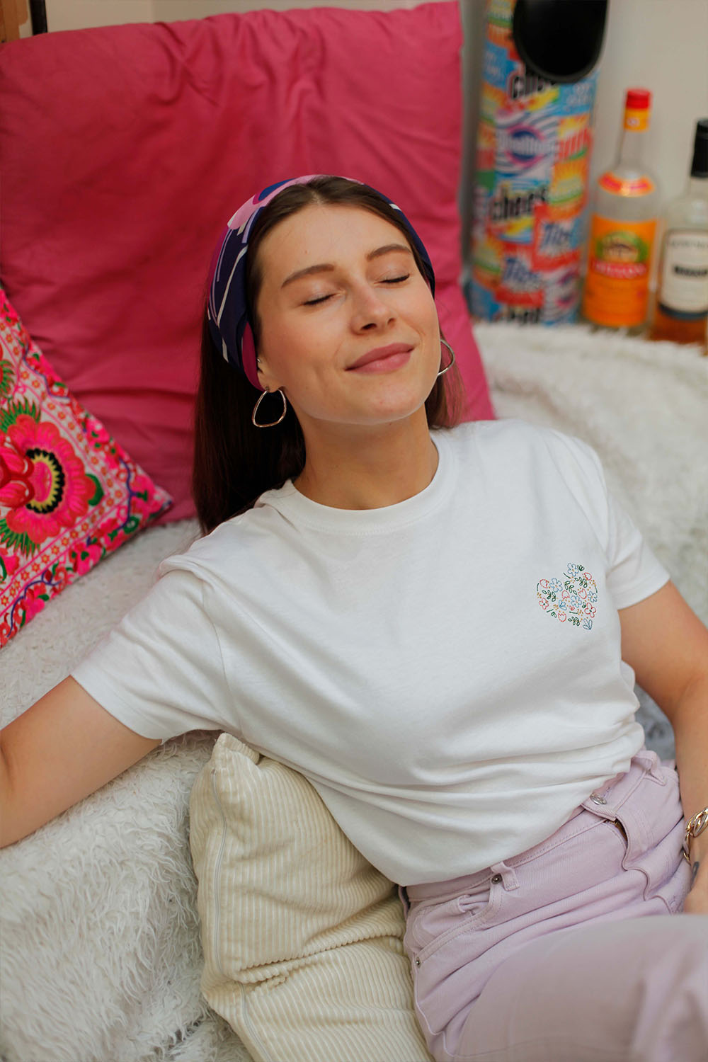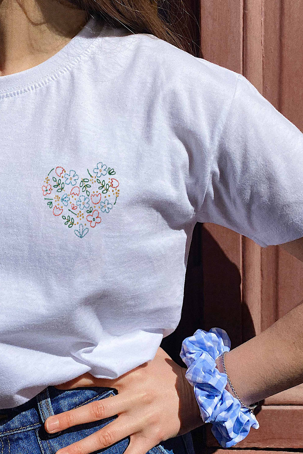 sur la broderie. Ne pas passer à la javel.