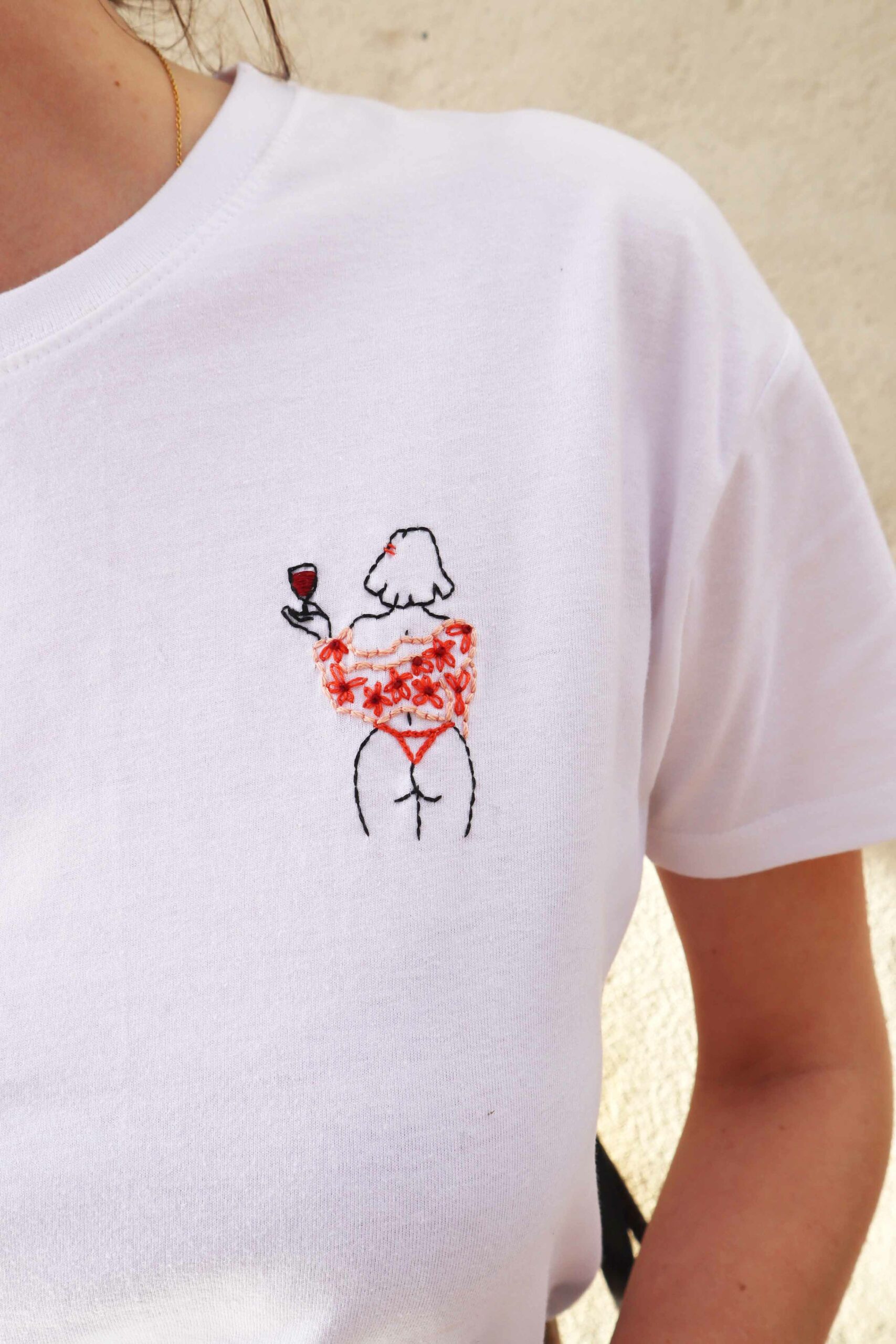 T-shirt unisexe 100% coton brodé à la main