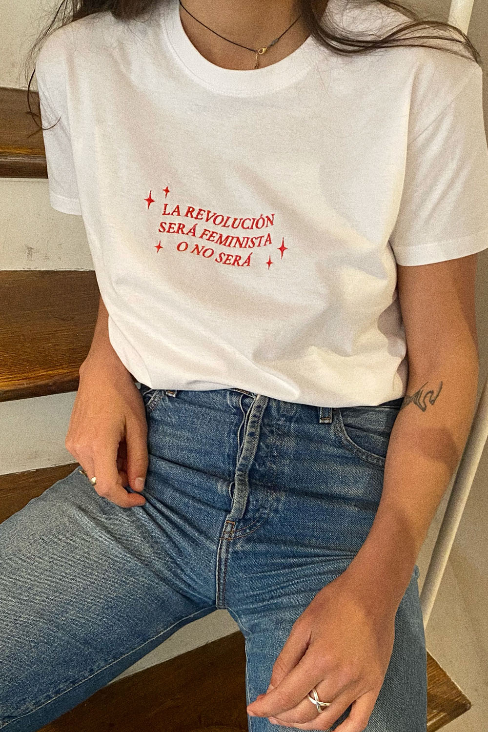 A l’occasion du 8 mars, on a créé un nouveau t-shirt brodé féministe « LA REVOLUCIÓN SERÁ FEMINISTA O NO SERÁ » !