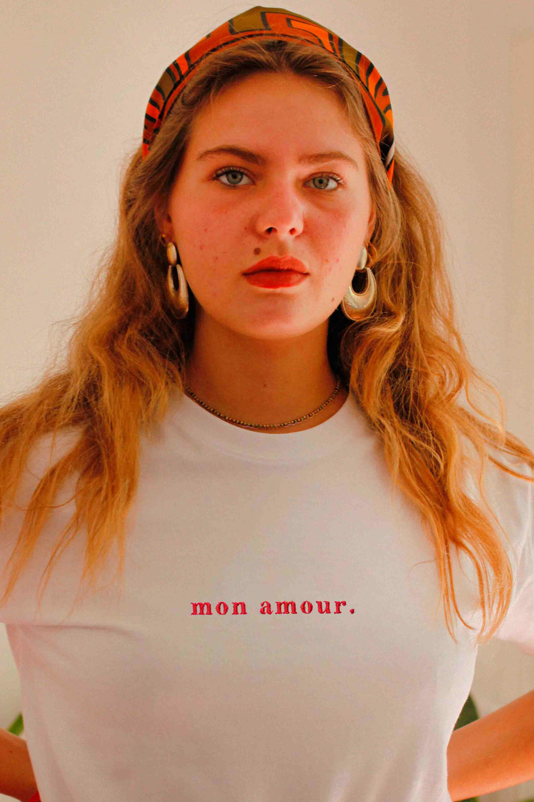 Célébrez l’amour avec notre T-shirt brodé « Mon Amour », une pièce unique alliant parfaitement le confort du t-shirt avec le style original de la broderie. Sélectionné pour sa douceur et sa coupe unisexe parfaite, notre t-shirt 100% coton est brodé dans notre atelier parisien, avec amour et patience. Offrez-vous un vêtement unique et intemporel qui raconte une histoire.